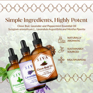 Siva Clove Bud, Peppermint and Lavender Essential Oil 4oz Bundle Super Saver Combo