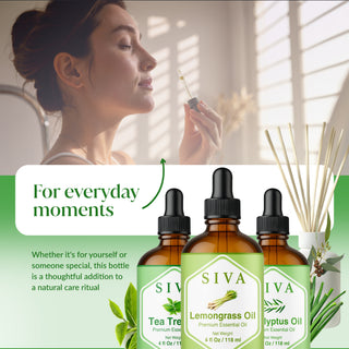 Siva Lemongrass, Tea Tree and Eucalyptus Essential Oil 4oz Bundle Super Saver Combo