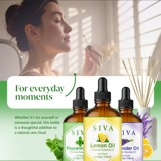 Siva Lemon, Peppermint and Lavender Essential Oil 4oz Bundle Super Saver Combo