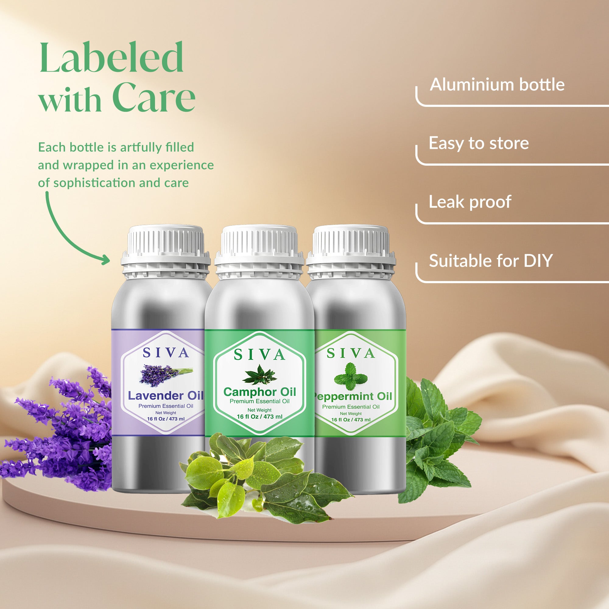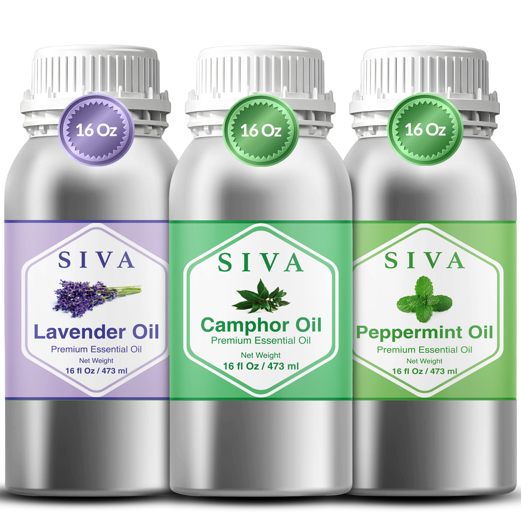 SIVA Camphor, Peppermint, and Lavender Essential Oils 16 oz are completely natural oils carefully selected to add freshness, and balance to your everyday activities. SIVA Camphor Oil is a product which is obtained by steam distillation of wood of Cinnamomum Camphora. SIVA Peppermint Oil is steam distilled out of leaves on Mentha Piperita and SIVA Lavender Oil is steam distilled out of Lavandula Angustifolia flowers. It contains no preservatives and includes convenient droppers so that one can easily and precisely apply it. An ideal value assortment to your well-being and creative wants, it is a brilliant inclusion to any essential oil set.