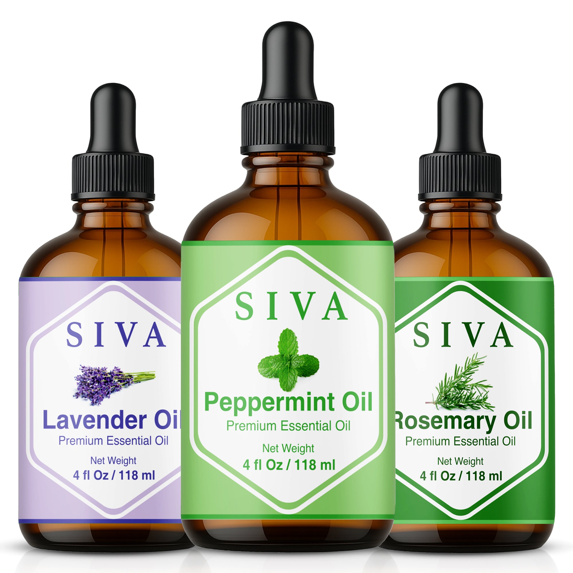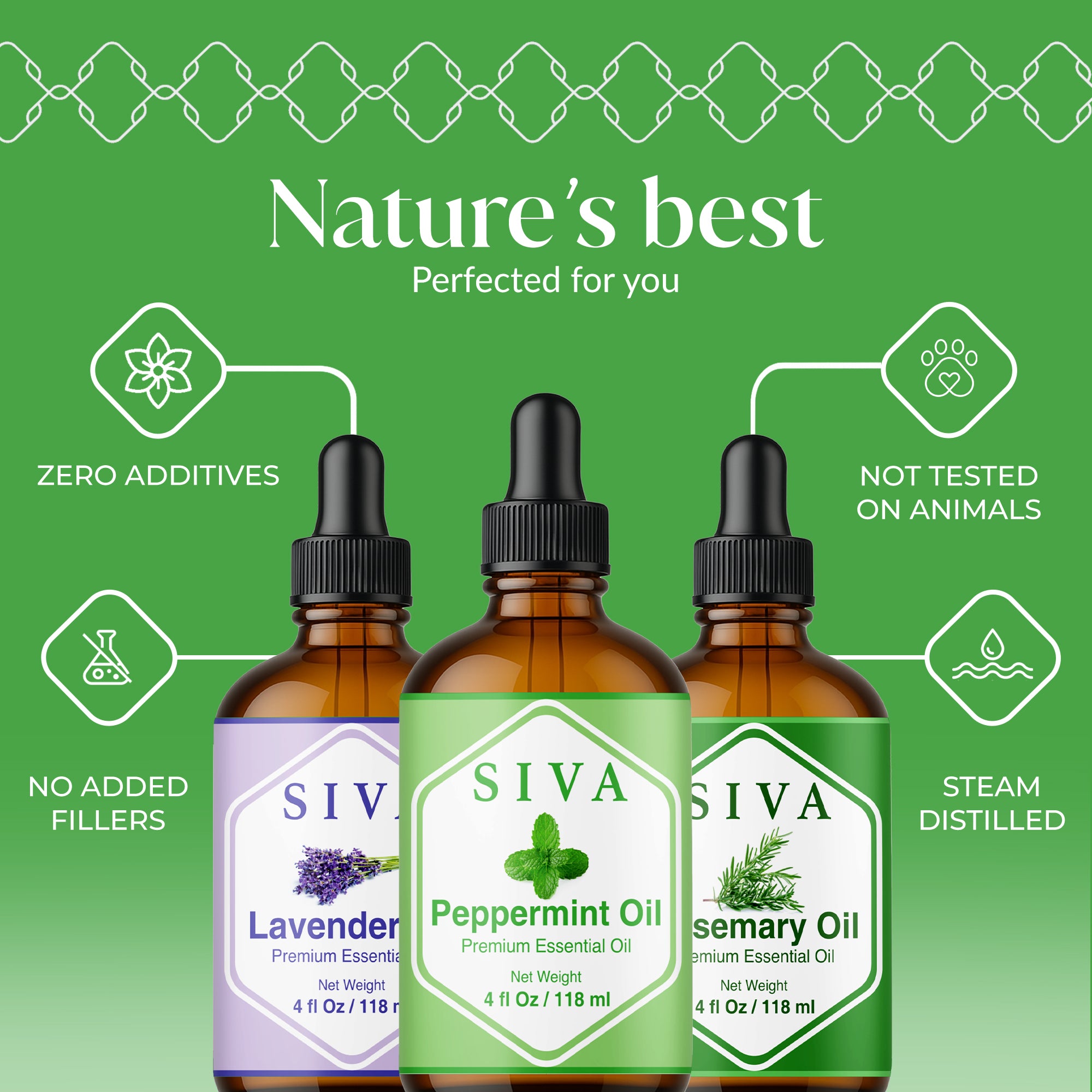 SIVA Peppermint, Rosemary and Lavender Essential Oils are 100% natural oils extracted from Mentha Arvensis herb, Rosmarinus Officinalis herb and Lavandula Angustifolia flowers through steam distillation. SIVA Peppermint Oil is obtained from the steam-distillation of the Mentha Arvensis herb. SIVA Rosemary Essential Oil is obtained by steam distillation of Rosmarinus Officinalis herbs. SIVA Lavender Oil is a premium essential oil and is obtained by steam distillation of Lavandula Angustifolia flowers. This Essential Oil starter kit is free from preservatives and 100% vegan. These oils come with a convenient dropper for effortless application. Carefully created, it’s an excellent addition to your Essential Oil collection.